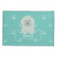 Petit chiot blanc moelleux et motif empreinte de patte monogramme.