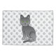 Illustration originale de Destei d'un mignon chat de race bleue russe. L'arrière - plan a un motif d'empreintes de pattes de chat gris.