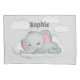 Coque coussin doux pour bébé genre neutre éléphant gardien de saké. Ajoutez un nom pour personnaliser ce coque coussin mignon. Un petit éléphant dormant aux oreilles grises et roses flottant sur un nuage blanc moelleux. Si adorable. Parfait pour garçon ou fille.