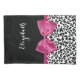 Un coque coussin empreinte de léopard noir et blanc à la mode avec un ruban rose foncé et vivant attaché à un joli arc de cercle. Personnalisez ce motif animal chic et élégant en ajoutant le nom de votre ado. Impression plane, pas ruban réel.