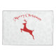 Beau rennes rouges sur arrière - plan blanc avec flocons de neige
