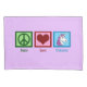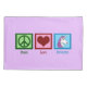 Peace Love Unicorns cadeau avec un signe de paix, coeur, et une belle licorne avec une crinière violette.