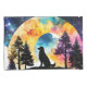 Watercolor Retriever Dog en attente : Silhouette contre pleine lune, Colorée avec nuages et arbres, Ai Généré Art par minx267