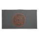 Ce mandala a été conçu pour le signe zodiaque Leo, représentant une pierre d'onyx au centre entourée d'éléments représentant le signe, comme le symbole du signe, la constellation, et le symbole alchimique pour le feu, ainsi que des vignes et des tissages en fibre, le tout enveloppant dans une image solide dans des tons noirs et des coppers rougeâtres.
