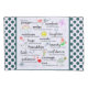 "C'est ma prière pour vous : Confort des jours difficiles, sourires quand la tristesse s'impose, arcs-en-ciel pour suivre les nuages, rire pour embrasser vos lèvres, couchers du soleil pour chauffer votre coeur, étreintes quand les spiritueux fléchissent, beauté pour que vos yeux voient, amitiés pour éclairer votre être, foi de sorte que vous puissiez croire, confiance pour quand vous doutez, courage de se connaître, la patience pour accepter la vérité, amour pour finir votre vie." Avec un arrière - plan et pois bleus/verts.
