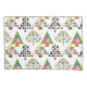 Cette taie d'oreiller a un design moderne du milieu du siècle des arbres de Noël dans différents styles. L'une a une grille avec des rectangles avec des éclats à l'intérieur. Un autre comporte des rectangles arrondis avec des rectangles plus petits à l'intérieur. Un troisième a des lignes courbes avec des étoiles sur elles. L'arbre final est un triangle avec d'autres petits triangles à l'intérieur