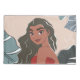 Un beau moment illustré avec Moana en arrière-plan à travers les feuilles tropicaux.