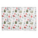 Noël à la française avec une tour Eiffel vintage, fleur de lis, texte et couronne de PARIS en noir et blanc, ainsi que des saints, des poinsettias, des arbres de Noël victoriens et des branches de pins en rouge et vert sur blanc, pour faire un coque festif en tissu Noel français literie coussin.