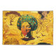 My Design présente un portrait stylisé d'une belle femme africaine portant un foulard coloré. L'écharpe est ornée de motifs de feuilles vertes et jaunes. Son visage est rempli d'une silhouette couché de soleil, avec des oiseaux volant à travers le ciel et un paysage arboré. Elle porte de grandes boucles d'oreilles ornées et un collier perlé. Illustration vectorielle de style pop art original Copyright BluedarkArt TheChameleonArt.
