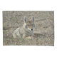 Coyote Laying Pillowcase. Un jeune coyote se détend après une matinée à la poursuite de souris dans les prairies à herbes courtes du sud-est de l'Alberta, Canada.