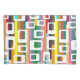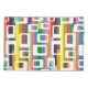 Cette taie d'oreiller a un design moderne du milieu du siècle de rectangles avec des trous sur un champ de rayures.
