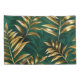 Seamless pattern of gold, jewelry, shiny fern branches and leaves on green, woodland, textured background. Golden fern.
