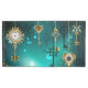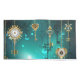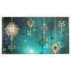 Or, clés antiques avec engrenages et cadrans accrochés sur chaînes dorées sur arrière - plan vert lumineux.