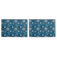 Destei's decorative white snowflake pattern over an abstract blue background.