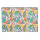 Cette taie d'oreiller présente un design moderne du milieu du siècle avec des triangles qui donnent un aspect terrazzo au sol, en gris, turquoise, orange, or et vert.