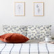 Marine et crème toile motif de mon propre design. Les images individuelles sont des maisons américaines historiques dessinées au XVIIIe siècle, avec l'aimable autorisation de la collection du domaine public de la Bibliothèque publique de New York.