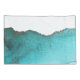 Linge de lit Turquoise noir Abstrait à l'alcool sophistiqué. Couleurs fluides et ombres de grains dorés de sable. Formes organiques et tons turquoise, aqua et or foncé/noir. Cool, des couleurs fraîches d'été qui rappellent la Méditerranée.Voir la collection pour d'autres variantes et articles assortis ainsi que des accessoires de décoration et de style de vie. Ce produit est imprimé recto-verso. Art abstrait original de l'encre d'alcool par l'artiste internationale Pauline Benjes.