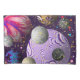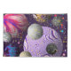 Cosmic Delight est une oeuvre d'art numérique composée de planètes colorées et d'étoiles dorées sur fond de ciel violet.