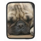 Chien de carlin de sommeil avec sa tête sur ses pattes.