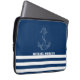 Housse Pour Ordinateur Portable Ancre nautique, Marine Blue Stripes