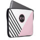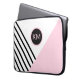 Motif géométrique pop art contemporain avec une touche rétro, cette pochette d'ordinateur portable avant mode a des rayures noires en angle et un bloc de couleur rose avec un cadre rond correspondant en évidence autour de votre monogramme. Personnalisez le modèle de texte avec votre monogramme. D'autres produits de bureau assortis et accessoires d'équipement technologique sont disponibles dans ce design élégant.