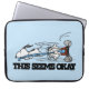 Très belle qualité d'impression. La pochette est très bien ajustée à un portable de format 13 pouce (dans le cas présent) sans être ni trop serrée, ni trop grande. Je ne possède pas le produit depuis très longtemps, donc la durabilité reste à évaluée. Avec la rentrée des classe et son utilisation maximisée, il sera possible de voir si le produit passe le test du temps (coutures, qualité du matériel, fermeture éclaire...).