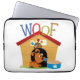 Un chien mignon avec une boule et un plat de nourriture, une niche, et texte coloré qui lit WOOF sur le T-shirts de chien de Woof, les sweat - shirts à capuche, les tasses, les sacs, les cartes, les autocollants, les porte - clés, les boutons, le magnet, les conseils secs d'effacement, les cas électroniques et les plaques à papier de douille et et les serviettes, et beaucoup d'autres articles de conception de chien !