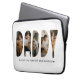 DADDY laptop sleeve personalized with 5 of your favorite photos which are displayed in the shape of the word DADDY with the words "Love you forever and always!" Perfect for your dad!