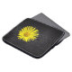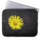 Cette manche pour ordinateur portable a une fleur jaune dessus.