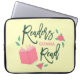 Parfait pour les amateurs de livres, cette pochette d'ordinateur portable comporte les mots "Lecteurs Gonna Read" entourée d'un livre ouvert, roses et feuilles contre un arrière - plan jaune clair. *Veuillez noter que le filigrane Zazzle qui apparaît dans l'aperçu du zoom n'apparaîtra pas sur le produit imprimé final. © Bookish and Wonderful