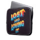 Un design graphique fantaisiste et enchanteur avec le texte "Lost and Loving It" dans une palette de couleurs vibrante d'inspiration imaginaire. Le design intègre des motifs tourbillonnants, des symboles magiques et des éléments éthérés, créant une atmosphère onirique. L'ensemble est ludique et imaginatif, invitant les spectateurs à embrasser l'attrait de l'inconnu.