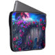 Cette manche pour ordinateur portable a une lune et une guitare sur elle.