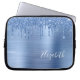 Manches personnalisées chic et girly pour ordinateur portable avec fausse parties scintillant bleue qui coule vers le bas un arrière - plan bleu faux métallique. Monogramme avec votre nom dans un script blanc élégant.