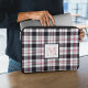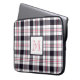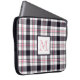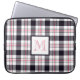 Cette pochette d'ordinateur portable personnalisée dispose d'un motif écossais moderne (plaid) avec des rayures en blanc, rose rougeâtre et noir et d'un monogramme encadré de couleurs assorties.