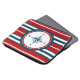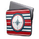 Design nautique avec décoration de boussole en forme ronde sur arrière - plan rayé rouge, bleu et blanc