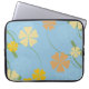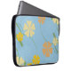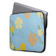 Manche d'ordinateur portable tropicale avec arrière - plan bleu clair, fleurs jaune et orange