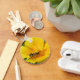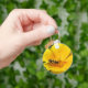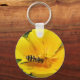 This beautiful keychain features a detailed photograph of a gorgeous black and yellow striped hoverfly crawling around on a yellow Californian Poppy searching for nectar.