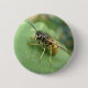 This beautiful button features a stunningly detailed close-up photograph of a gorgeous black and yellow striped hoverfly resting on a leaf. The photograph was taken using macro photography for a fantastically detailed result.