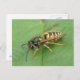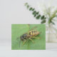This postcard features a detailed photograph of a gorgeous black and yellow striped hoverfly resting on a leaf. The photograph was taken using macro photography for a fantastically detailed and sharp close-up image.