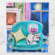 Add a touch of charm and personality to your wine bottles with this custom label featuring a cozy cat lounging on a green couch, set against a whimsical house background. Printed on high-quality labels, your bottles will stand out with a unique artistic flair.