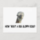 An alpaca face is shown up close with the text, "How 'bout a big sloppy kiss?z" on this funny postcard