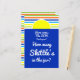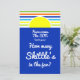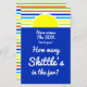 Baby Shower Guess How many in the Jar game pedestal sign. Matching design for Here Comes The Son Summer Stripes Baby Shower Collection. A modern and fun and colourful design for an upbeat summer baby shower featuring a Rising Sun. Cheerful and fun font for customizable text.