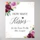 How Many Kisses Purple Floral Rose Gold Litters Bridal Shower Game Sign Poster.