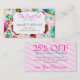 Carte de visite orienté de hibou coloré avec le bon/remise sur le postérieur - perfectionnez pour une boulangerie, le café, la boutique ou tout autre magasin de détail. Customisez avec votre propre texte pour une carte parfaitement personnalisée qui saisira l'attention de vos clients ! {{Pour des couleurs ou l'aide spécifiques avec la disposition, laissez- tombermoi une ligne chez mel@creativemel.com - je serai heureux d'aider !}}