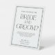 This is an elegant, minimalist and modern "How old were the bride and groom?" game pedestal table sign. It features a simple and stylish design using simple typography in striking and classic black and white. Please contact the designer for any queries or any requests for variations on this design..