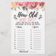 Purchase this game and enjoy high quality How old were they card for your event! Guess the ages of the Bride and Groom-to-be in the photos. Flowers design.