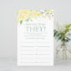 This lovely yellow floral How Old Were They? bridal shower game sheet is elegant and charming - perfect for any garden, botanical, rustic, romantic, floral, formal or vintage wedding. Its exquisite combination of graceful soft yellow roses, wildflowers and wispy greenery is flowy, delicate, and beautiful. The gold dots add a touch of fun and whimsy. This fun and easy game is sure to bring lots of laughter to any bridal shower! Have family and friends send you pictures of the bride and groom at all different ages and have them printed. Number them and set them near these game sheets. Simply give a sheet to each guest (don't forget the pens) and let the competition begin! You'll be amazed at how many people really know the ages of the bride and groom. In seconds you can see how your game sheet will look. Simply select Personalize this Template and type in the names of the bride and groom.