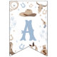 Decorate your high chair or wall with this rustic "How the West Was One" banner. Featuring cowboy icons and soft blue stars, it's the perfect backdrop for your boy's first birthday photos. A must-have for any western or cowboy themed 1st birthday party.