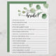 This how well do you know the bride bridal shower game is a perfect activity for a minimalist bridal shower celebration. The design features watercolor hand-drawn elegant botanical eucalyptus branches and leaves.