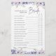 "How Well Do You Know The Bride Bridal Shower Game" is a delightful and creative activity for bridal showers. This game features beautiful purple flower designs that inspire guests to sketch their dream wedding dresses. With its charming floral theme, this game adds a touch of elegance to the celebration. Let your guests showcase their artistic flair and imagination with this fun and engaging bridal shower game!
